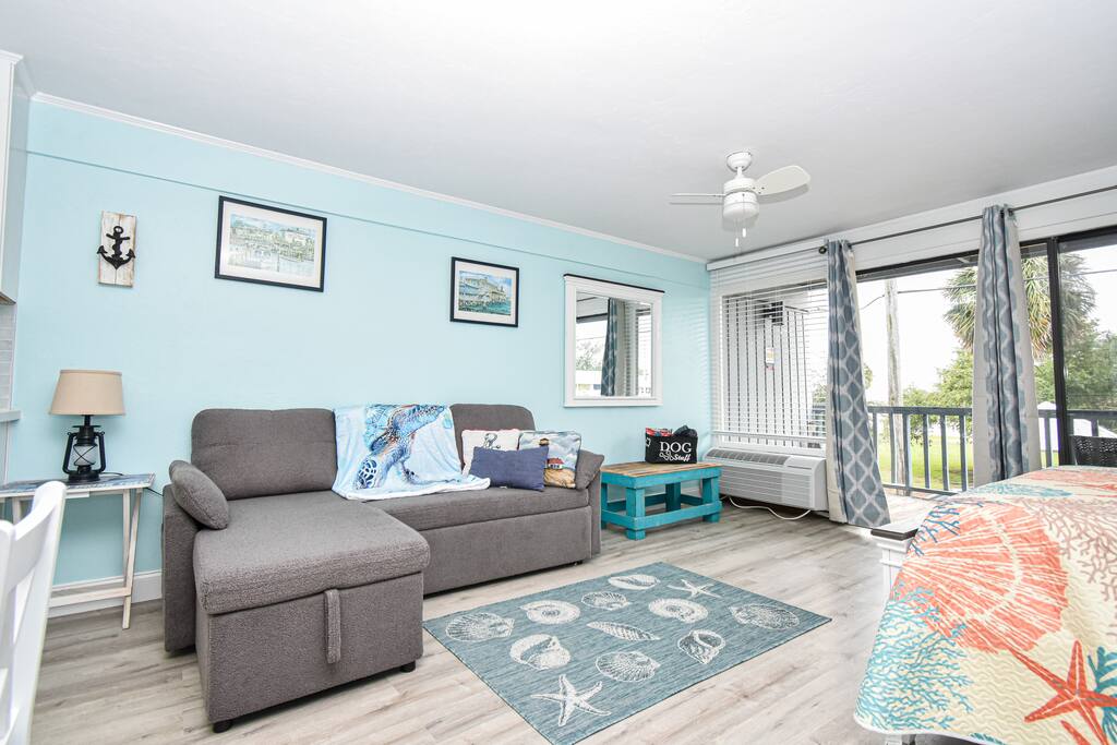 Enjoy this beautifully renovated condo right in the center of the Island Cedar Key. The balcony overlooks the park and the beach so you can enjoy your coffee watching the sunrise. Take a sunset tour to watch the dolphins and see the Islands or go swimming with manatees. Only short drive to the springs. The condo offers beautifully renovated shower with rain shower head, 2 burner stove, small oven, microwave, 2 coffee makers (regular and Keurig) and of course all other necessities.